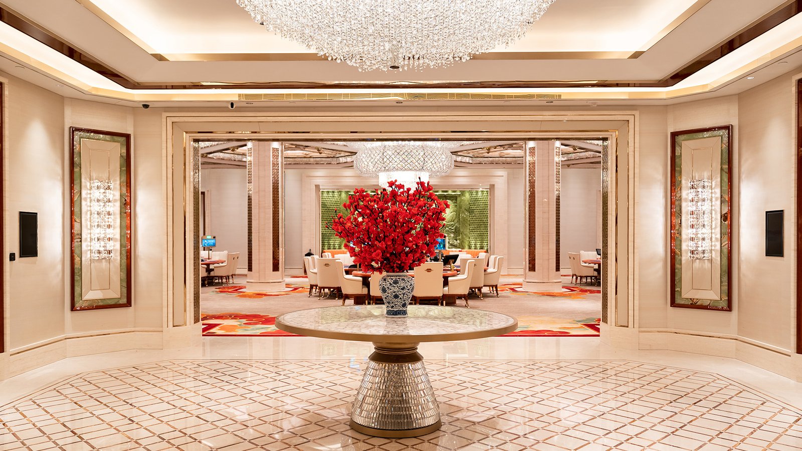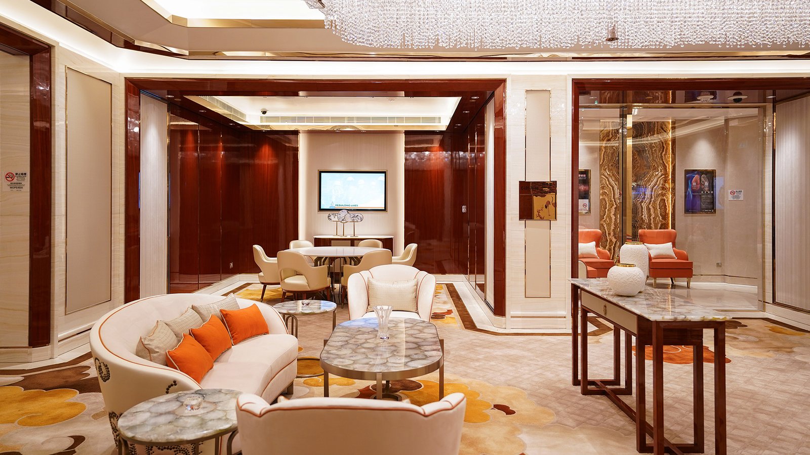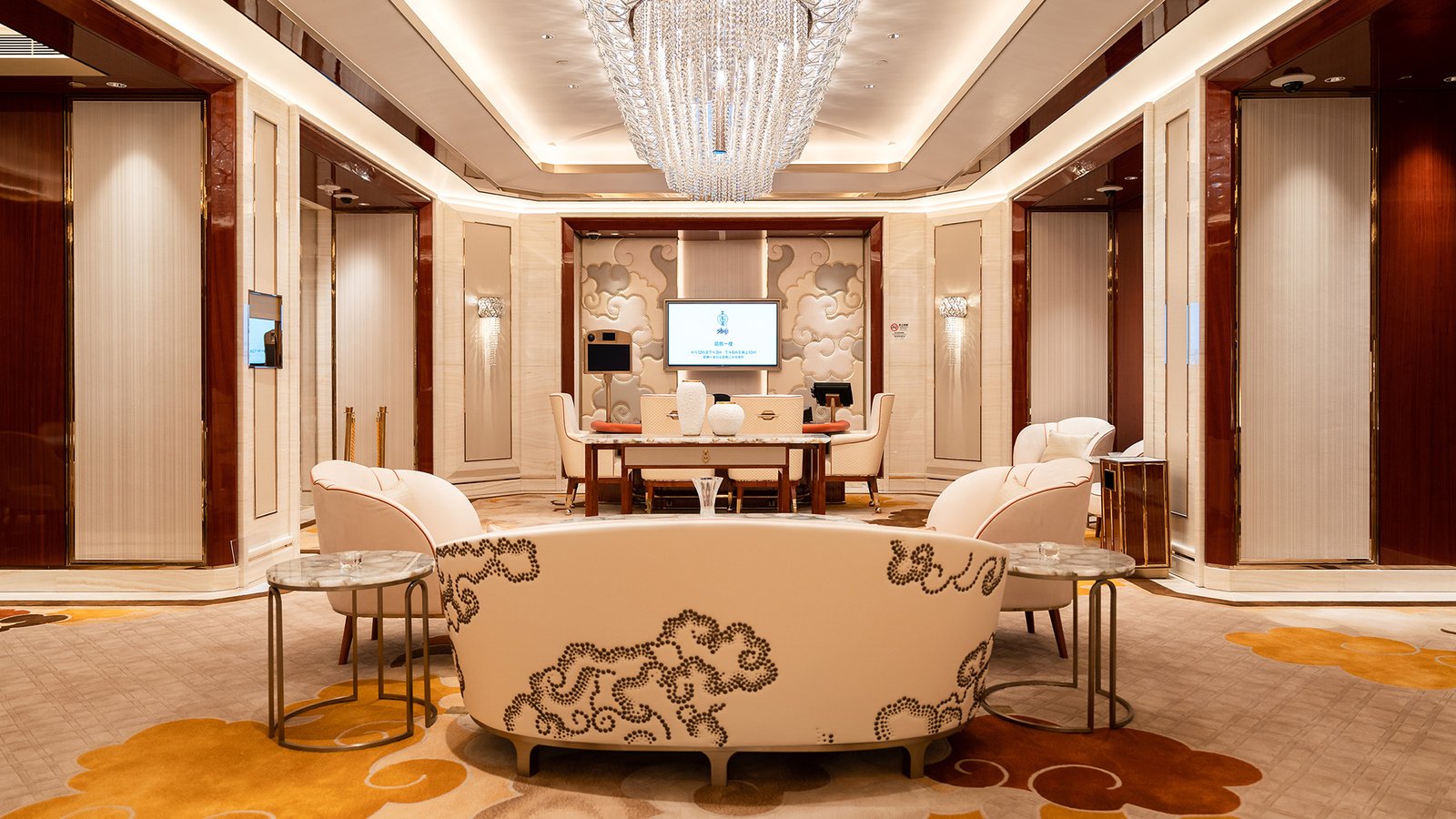 The City of Dreams Macau Signature Club entertainment areas come to life by crafting Chinese traditional symbolism with iconic modern executions, creating an opulent and immersive VIP environment that captivates every guest.